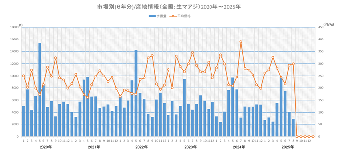 水揚げ日数は(前年と)ほぼ同様。巻網でマアジ以外に狙うサバ類とマイワシの水揚量も特に多いわけではなく、マアジが減少した要因は不明で、短期的なブレとも思われる。